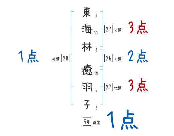 東海林癒羽子さんの画数の鑑定結果