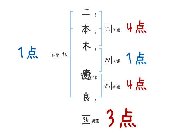 二本木癒良さんの画数の鑑定結果
