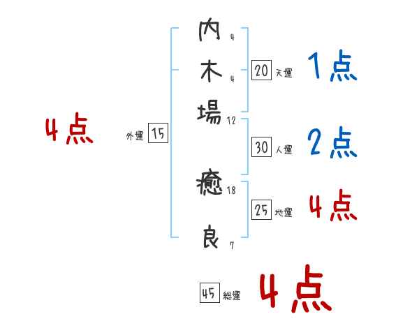 総運![]() | 内木場癒良さんの総運は45画の4つ星!もくもくと物事を進め達成する。地味な努力家。 あなたの人生を表す1番重要な運勢です。生涯を通じて影響する総合運となり、主に50歳以降の晩年期に影響を及ぼします。 |