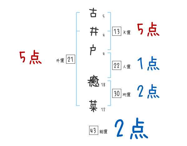 古井戸癒菜さんの画数の鑑定結果