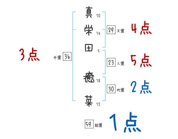 真栄田癒菜さんの画数の鑑定結果