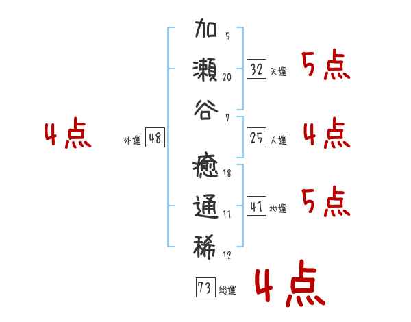 加瀬谷癒通稀さんの画数の鑑定結果