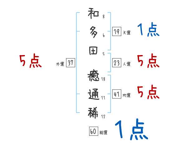 和多田癒通稀さんの画数の鑑定結果