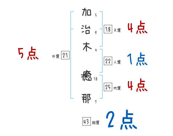 加治木癒那さんの画数の鑑定結果