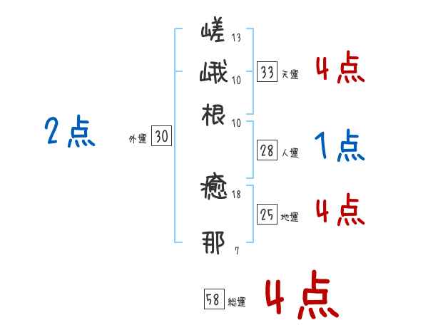 嵯峨根癒那さんの画数の鑑定結果