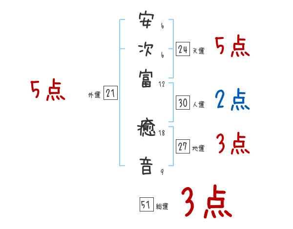 安次富癒音さんの画数の鑑定結果