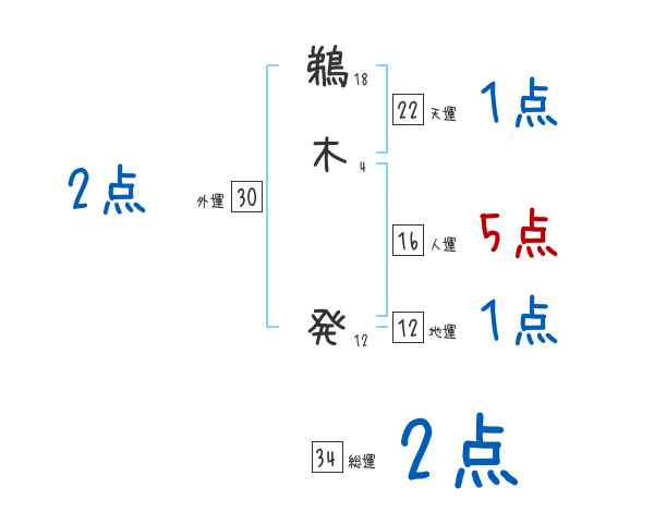 総運![]() | 鵜木発さんの総運は34画の2つ星!独創性に優れるが、自尊心が強く災難に注意しましょう。 あなたの人生を表す1番重要な運勢です。生涯を通じて影響する総合運となり、主に50歳以降の晩年期に影響を及ぼします。 |