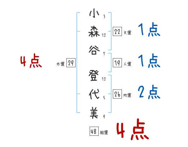 小森谷登代美さんの画数の鑑定結果