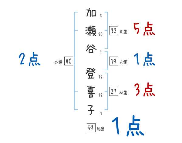加瀬谷登喜子さんの画数の鑑定結果