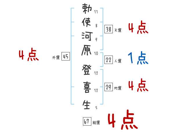 天運![]() | 勅使河原登喜生さんの天運は38画の4つ星!温厚な性格で技術的な才能を発揮する。職人的な仕事に向いている。 家系が持つ宿命的な運勢を表します。祖先から受け継いだ苗字ですので自分の力が及びません。家柄を象徴します。 |