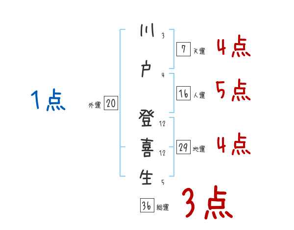 川戸登喜生さんの画数の鑑定結果