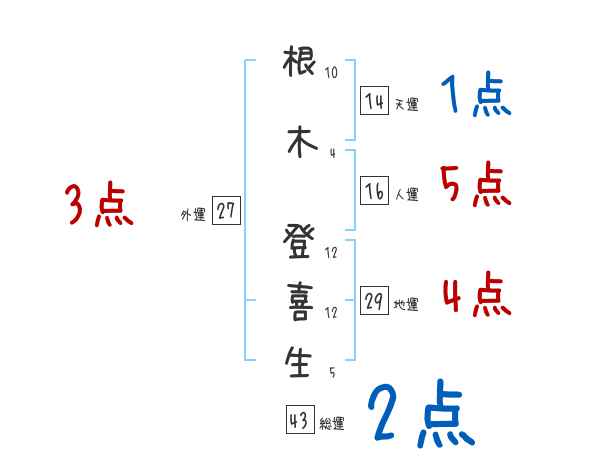 根木登喜生さんの総運は43画の2つ星