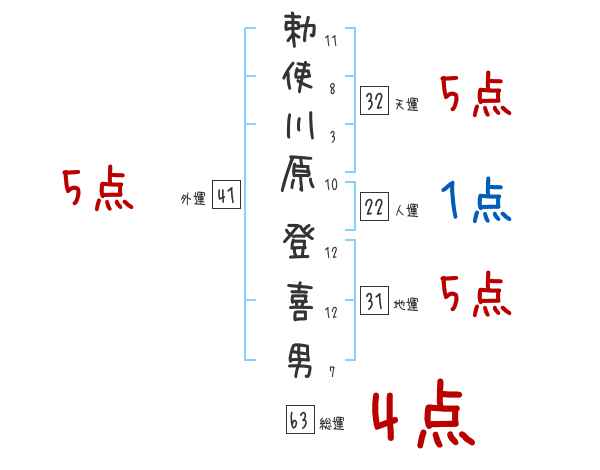 天運![]() | 勅使川原登喜男さんの天運は32画の5つ星!柔軟性があり成功する。チャンスが多く金運が良い。 家系が持つ宿命的な運勢を表します。祖先から受け継いだ苗字ですので自分の力が及びません。家柄を象徴します。 |