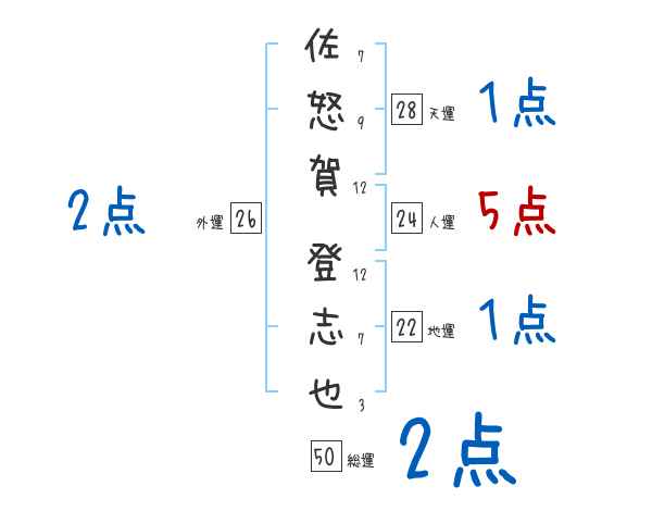 人運![]() | 佐怒賀登志也さんの人運は24画の5つ星!家庭運が良く順調な人生。金運にも恵まれる。 性格や才能などを表す2番目に重要な運勢です。人間関係や協調性、社会的な成功に影響します。主に20歳から50歳ぐらいまでの中年期の運勢を表します。 |