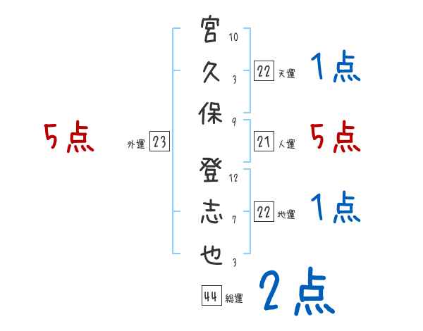 人運![]() | 宮久保登志也さんの人運は21画の5つ星!統率力がある。独立し成功する。名誉を手に入れる。 性格や才能などを表す2番目に重要な運勢です。人間関係や協調性、社会的な成功に影響します。主に20歳から50歳ぐらいまでの中年期の運勢を表します。 |