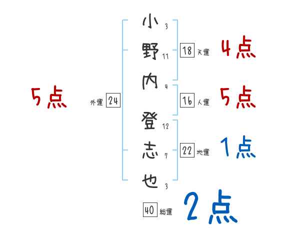 小野内登志也さんの画数の鑑定結果