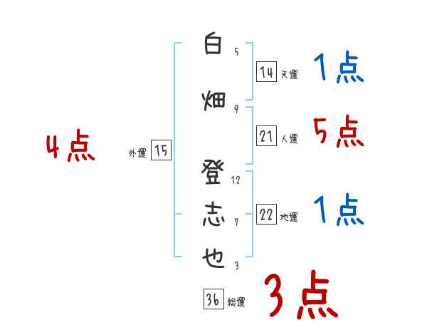 総運![]() | 白畑登志也さんの総運は36画の3つ星!先見性が豊かです。多少神経質で苦労することも。 あなたの人生を表す1番重要な運勢です。生涯を通じて影響する総合運となり、主に50歳以降の晩年期に影響を及ぼします。 |