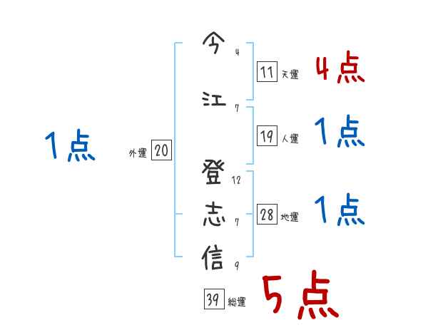今江登志信さんの画数の鑑定結果