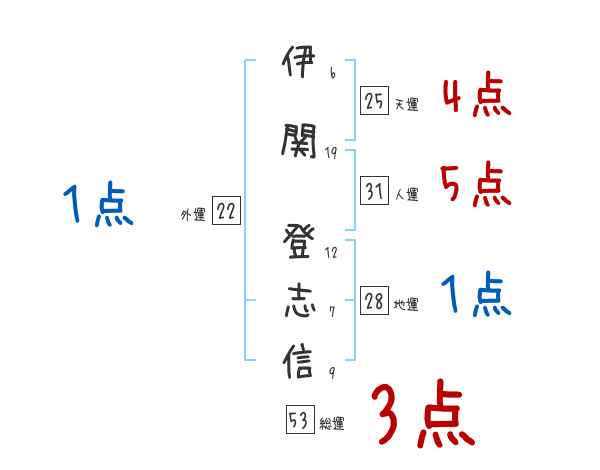 伊関登志信さんの画数の鑑定結果
