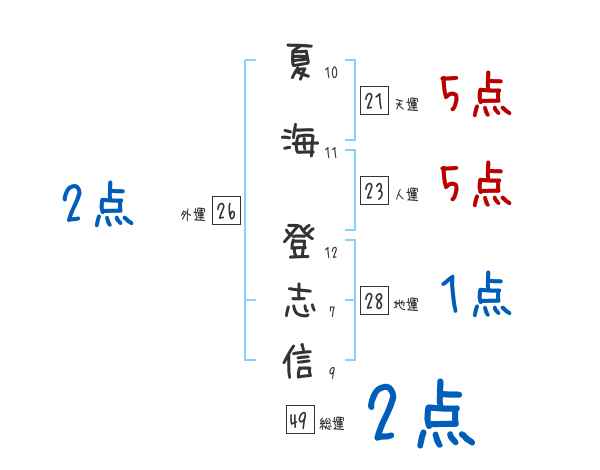 夏海登志信さんの画数の鑑定結果