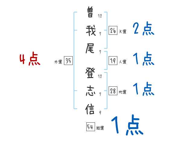 曽我尾登志信さんの画数の鑑定結果