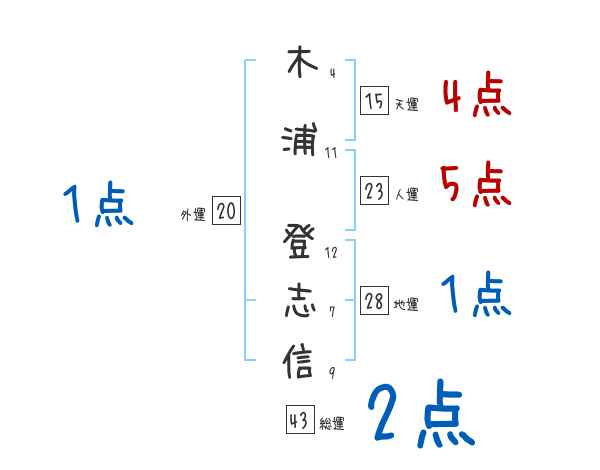 木浦登志信さんの画数の鑑定結果