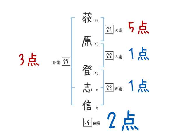 荻原登志信さんの画数の鑑定結果
