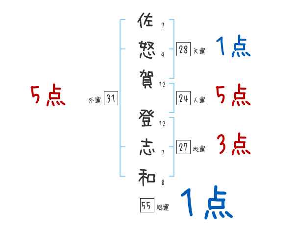 佐怒賀登志和さんの画数の鑑定結果