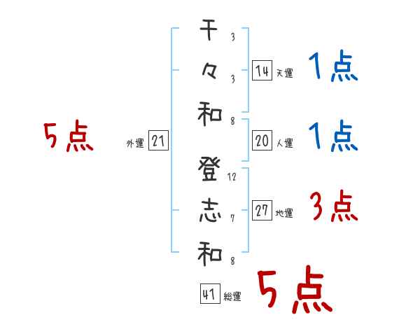 千々和登志和さんの画数の鑑定結果