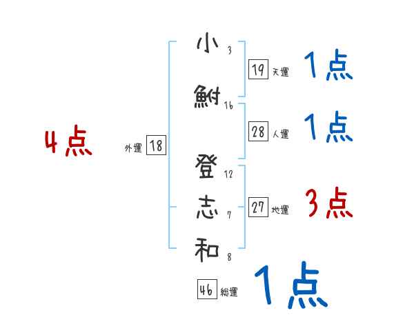 外運![]() | 小鮒登志和さんの外運は18画の4つ星!情熱的で剛気。忍耐力があり信頼される。 生活面を象徴する運勢です。外部から受ける影響力を表し、結婚運、家庭運や職場、環境への順応性を表します。 |