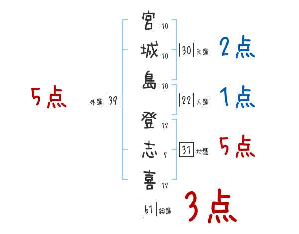 家系が持つ宿命的な運勢を表します。祖先から受け継いだ苗字ですので自分の力が及びません。家柄を象徴します。