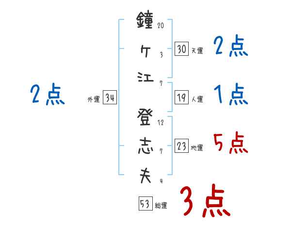 鐘ヶ江登志夫さんの画数の鑑定結果