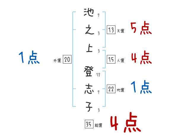 池之上登志子さんの画数の鑑定結果