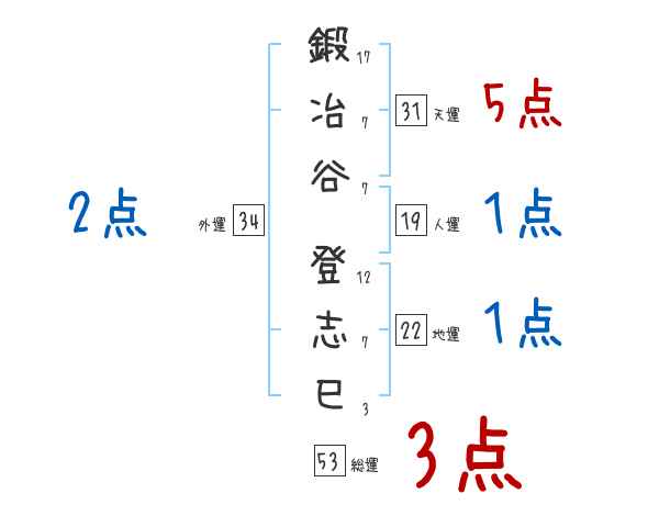鍛冶谷登志巳さんの画数の鑑定結果