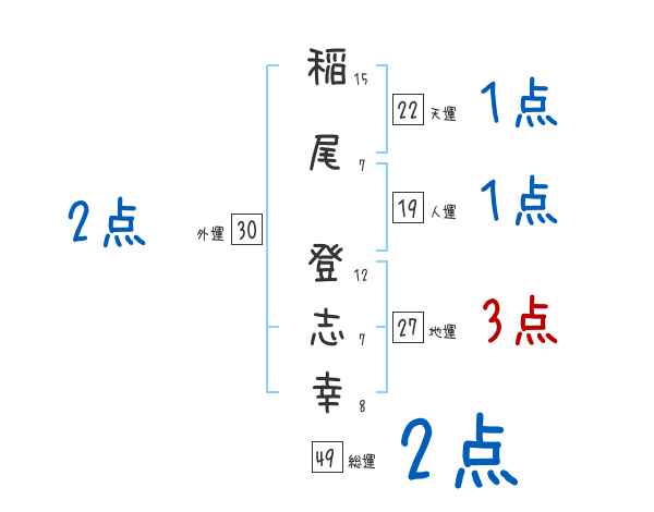 稲尾登志幸さんの画数の鑑定結果