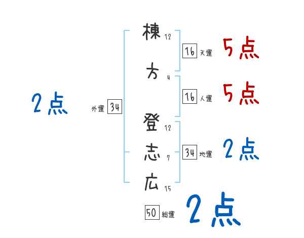 棟方登志広さんの画数の鑑定結果