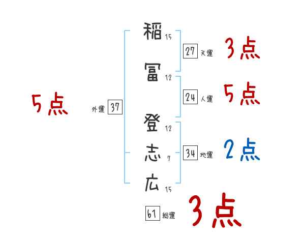 稲冨登志広さんの画数の鑑定結果