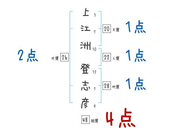上江洲登志彦さんの画数の鑑定結果