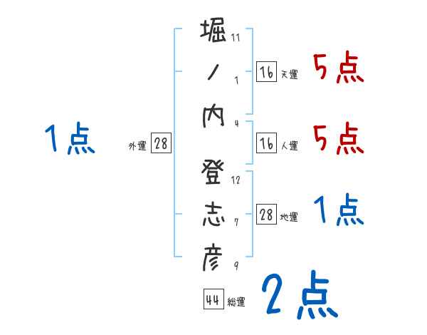 堀ノ内登志彦さんの画数の鑑定結果