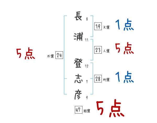 長浦登志彦さんの画数の鑑定結果