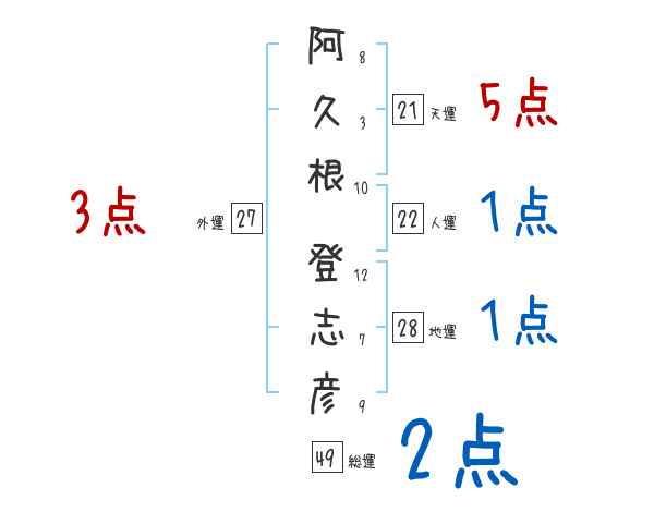 阿久根登志彦さんの画数の鑑定結果