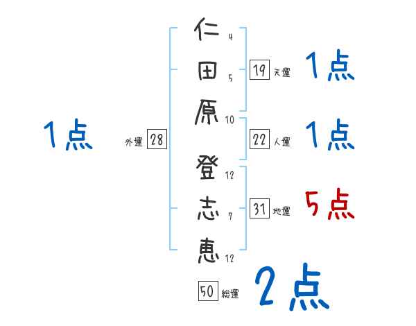 仁田原登志恵さんの画数の鑑定結果