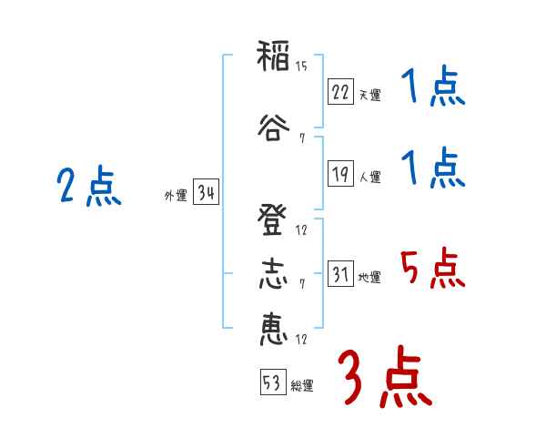 稲谷登志恵さんの画数の鑑定結果