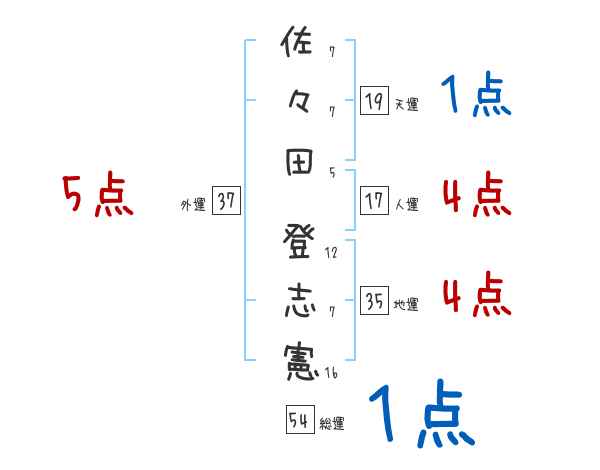 佐々田登志憲さんの画数の鑑定結果