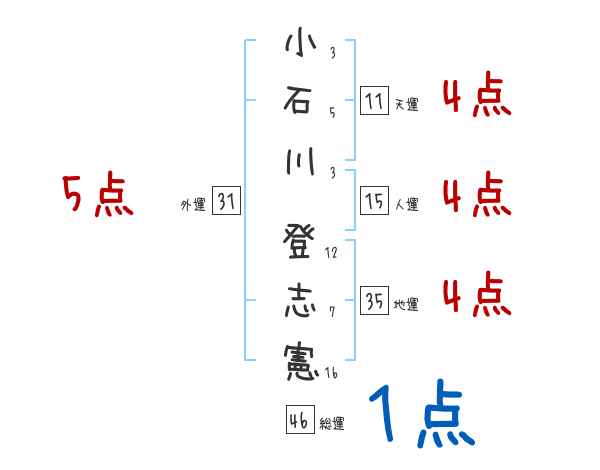 小石川登志憲さんの画数の鑑定結果