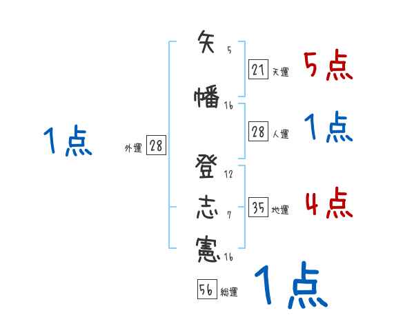 外運![]() | 矢幡登志憲さんの外運は28画の1つ星!家庭環境に注意。スポーツで活躍できる能力があるかも。 生活面を象徴する運勢です。外部から受ける影響力を表し、結婚運、家庭運や職場、環境への順応性を表します。 |