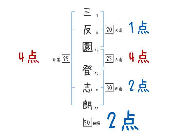 三反園登志朗さんの画数の鑑定結果