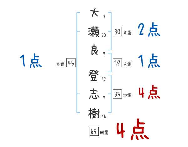 大瀬良登志樹さんの画数の鑑定結果