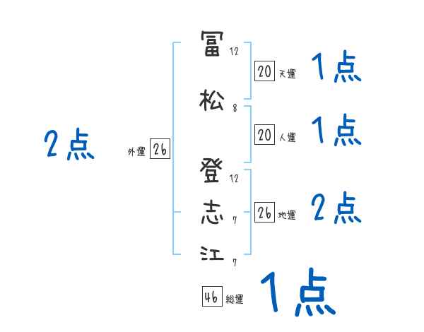冨松登志江さんの画数の鑑定結果