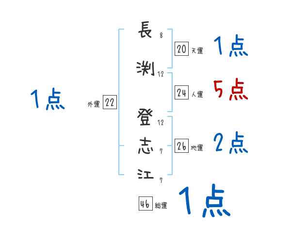 長渕登志江さんの画数の鑑定結果